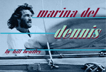 "My dog smells queers," he says, the voice scrapped dry from swigging malted sand. He's the dream kid at the tail end of America, burnt red to a scruffy crisp, high and dry behind the wheel of a baby blue T-bird, now left to listen for a silent station on his holy radio. No way would Popeye be too proud of this beached boy, prowling the street named so nicely after our first grandfather George. "Colonel Smirnoff," I say, a southpaw living on cottage cheese and bad blood. Every day it's the same: two eyes that go out with the tide while he salutes an invisible white flag. No stripes, no stars, just a shaggy dog bar backed by an endless buzz. So what's left? Stick ol' Glory in his skull, a few lit sparklers in each arm and turn him toward the ocean for one last lonely dance? But drummer Dennis, the sweet and sour Marina menace, has it figured different. There's no one behind him, no mosquitoes to swim into his ears or clouds to rain on his face. That's the way it's got to be when you're nearer the end than the start. "So don't worry baby," Dennis barks, "it's only the world, and anyway, there's still the sun." I listen, he looks, we smile, while the surf applauds its most famous friend. Then with a cockeyed grin to match the new moon he asks, "the dog smells junkies, how much for the dog?" There are no takers tonight in Marina Del Rey.