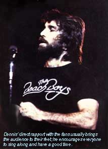 "It's a homemade kind of album," Gregg said, "without a lot of studio players. Dennis created it as he's gone along, track by track. It was really built in the studio. We've written words in the studio. That's pretty unique. "From where I'm at it's crazy. It's one of the things you don't do," Gregg continued. The advantages to having unlimited access to the studio, as Dennis had during the recording of this album, are that you can hear your mistakes right away and correct them. The making of the record becomes the important thing, rather than the result. Gregg gives the picture of Dennis during this time as someone totally absorbed in his work. "We'll have a concept, and go from there, without any lyric ideas," Gregg said. "Dennis comes into the studio in the morning and stays until he's tired. I think it's innovative in the way it's produced and evolved. The songs range from real slow ballads, Thoughts of You, to some really big rock and roll stuff. In between, there's everything from really nice, soft rock ballads to rock and roll." The other musicians include Bobby Lamm, Baron Stewart on background vocals, Hal Blaine on a few drum tracks, Steve Douglas on sax, and Eddie Carter on guitar. While the Beach Boys are "officially not supposed" to be on the album, Jakobson acknowledges that, "you might hear some of them in the background." The album is generally "up," with many love songs, Gregg said, but the title track deals with the theme of pollution, hardly something that would have surfaced on a Beach Boys album in the '60s, when the ocean was a source of escapism and pleasure. Now, that pleasure is marred by man's greed, and Pacific Ocean Blues is really a paradoxical song, with the lines "We live on the edge of a body of water/ Cold-hearted slaughter of the otter/And that's why the ocean is blue" portraying the ocean as having been betrayed by man. "Dennis has been wanting to flex for a while," Jakobson said, "and Jim Guercio, the president of Caribou, gave him the go ahead." Guercio is the producer of Chicago, and apparently has a lot of faith in Dennis' ability to make it as a solo artist. Guercio, Jakobson says, "has never lost yet."