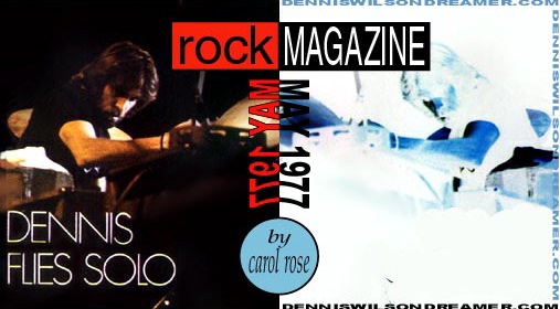 Webmaster's note: Rock journalism arguably hit a zenith in the mid 70's, and periodicals like ROCK magazine were instrumental in sparking intelligent dialogue about contemporary music, suggesting that Rock and Roll could be analyzed as an art form. This article by Carol Rose remains one of the most thoughtful pieces on Dennis to appear in the rock press during his lifetime. The piece includes some interesting interview material from Max Weinberg, as well as rare quotes from Pacific Ocean Blue co-producer Gregg Jakobson.